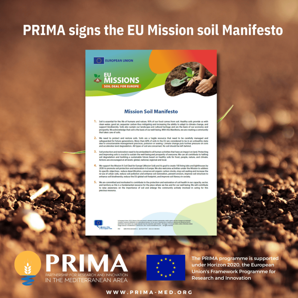 PRIMA signs the EU Mission Soil Manifesto: pledging support for soil health in the Mediterranean