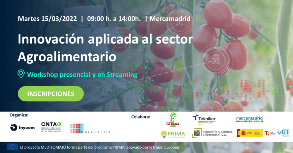 PRIMA to participate in: “Applied innovation in the Agri-food sector” with the presence of 4 of its projects @SUREFISH_EU, #Tracerice, @meditomato and @iguessmed. Know more 👉https://inycom.microsoftcrmportals.com/workshop-innovacion-aplicada-sector-agroalimentario/ @Inycom @TeknikerOficial @mercamadrid_hoy @CDTI_innovacion