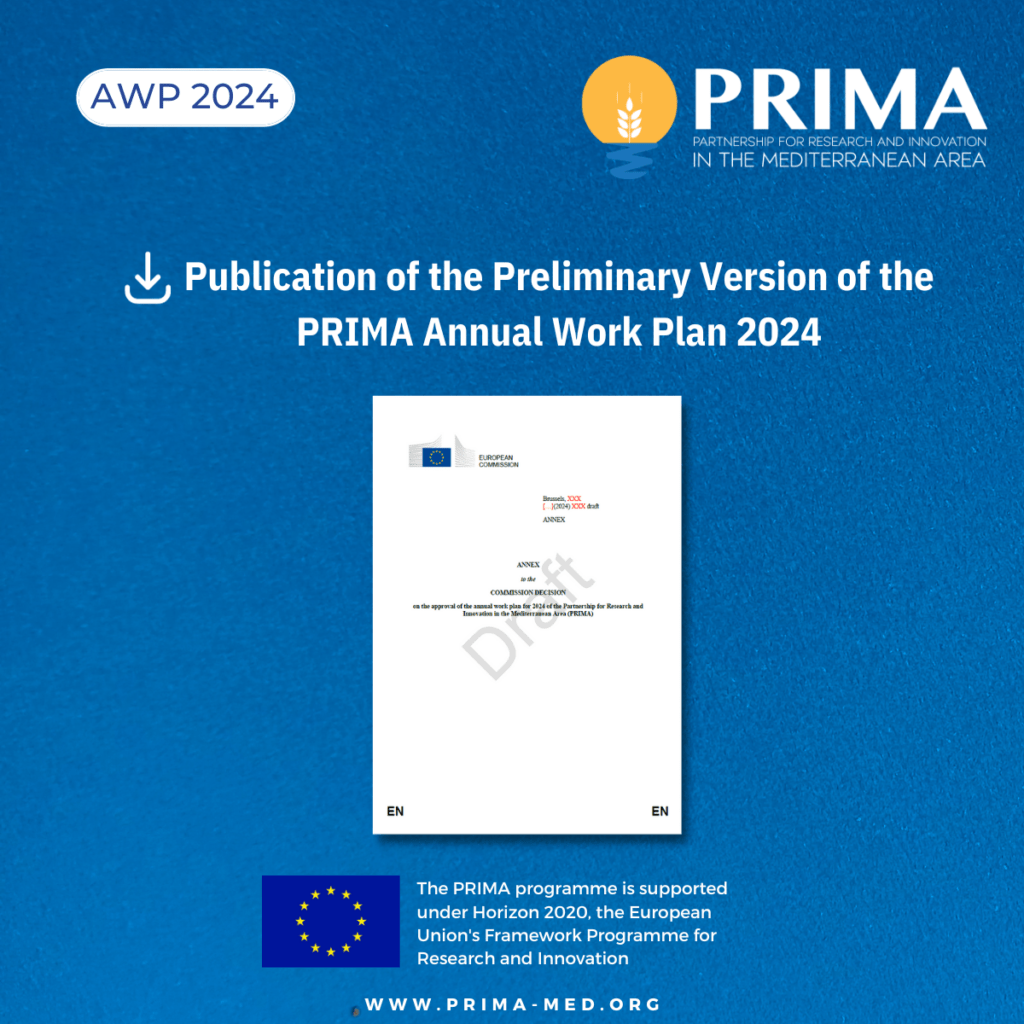 Publication of the Preliminary Version of the PRIMA Annual Work Plan 2024