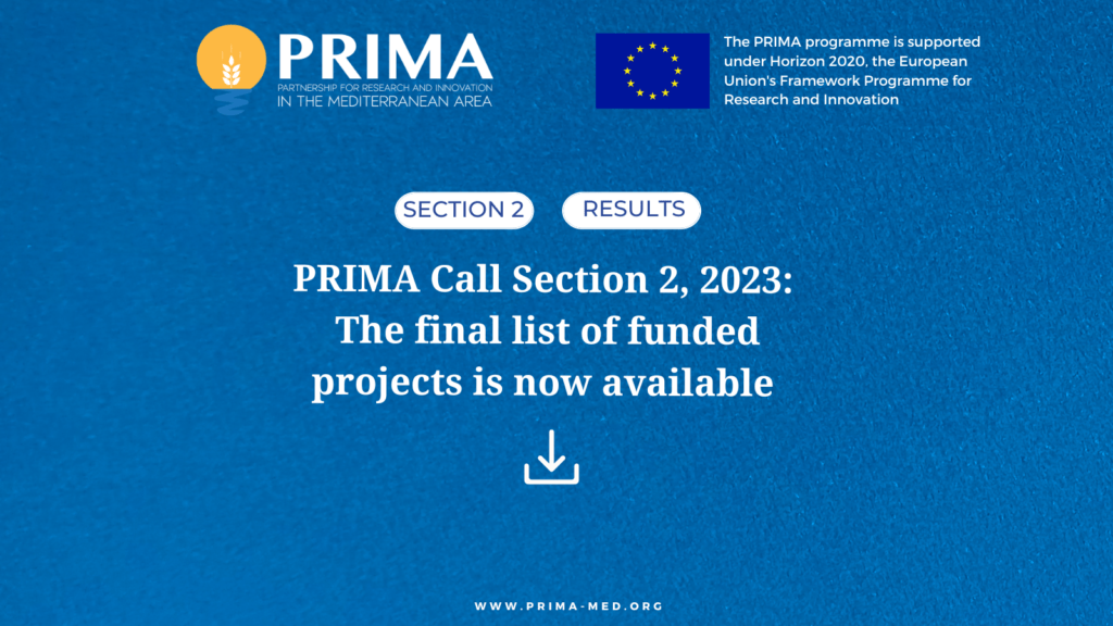 Exciting news! The wait is over as PRIMA unveils the projects set to receive funding for #Section 2! Have a look to the cutting-edge projects selected, making waves in the Mediterranean region. RESULTS OF THE CALL PRIMA SECTION 2 2023 – MULTI-TOPICLIST OF THE PROJECTS SELECTED FOR FUNDINGTO BE FUNDED: