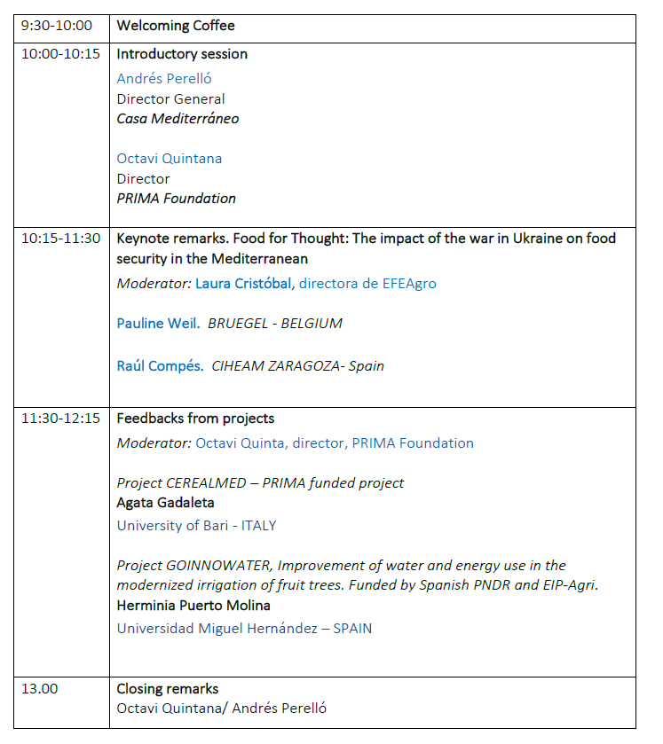 The first workshop organized by Casa Mediterráneo, PRIMA, and CIHEAM focuses on