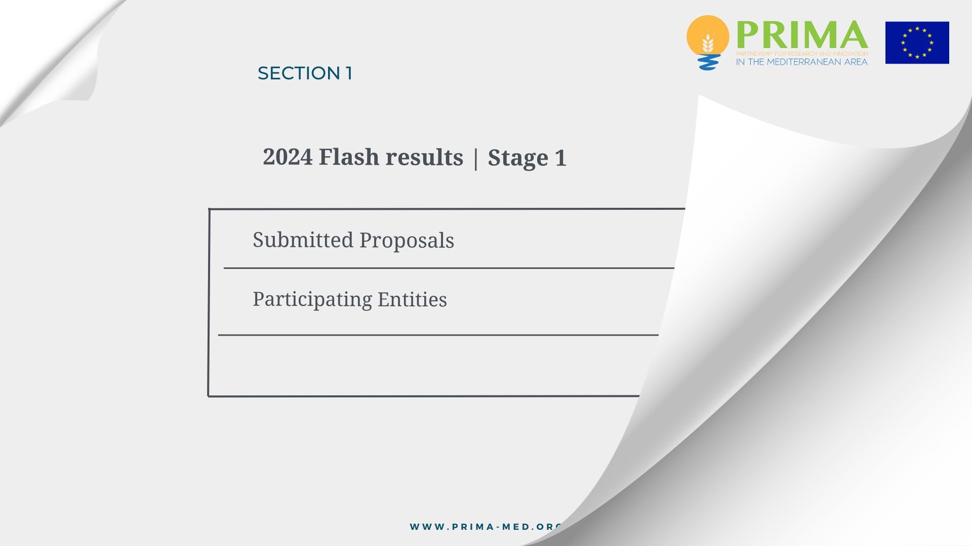 In Section 1, funded by PRIMA-IS with EU funds, we’ve received 174 eligible proposals for projects involving 2039 entities.
