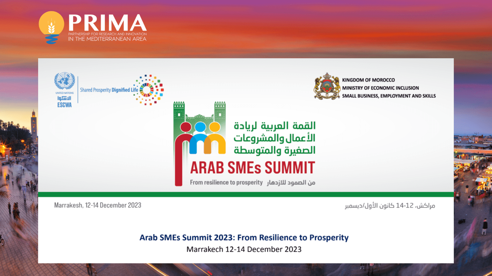 The Arab SMEs Summit is an annual event organized with the objective of propelling the development of SMEs across the Arab world. Under the theme “Boosting Arab SMEs Sustainability & Growth via Strengthening EU-Mediterranean Bridges & Partnerships,” PRIMA aims to advance its joint cooperation with ESCWA to bring about positive change and innovation.