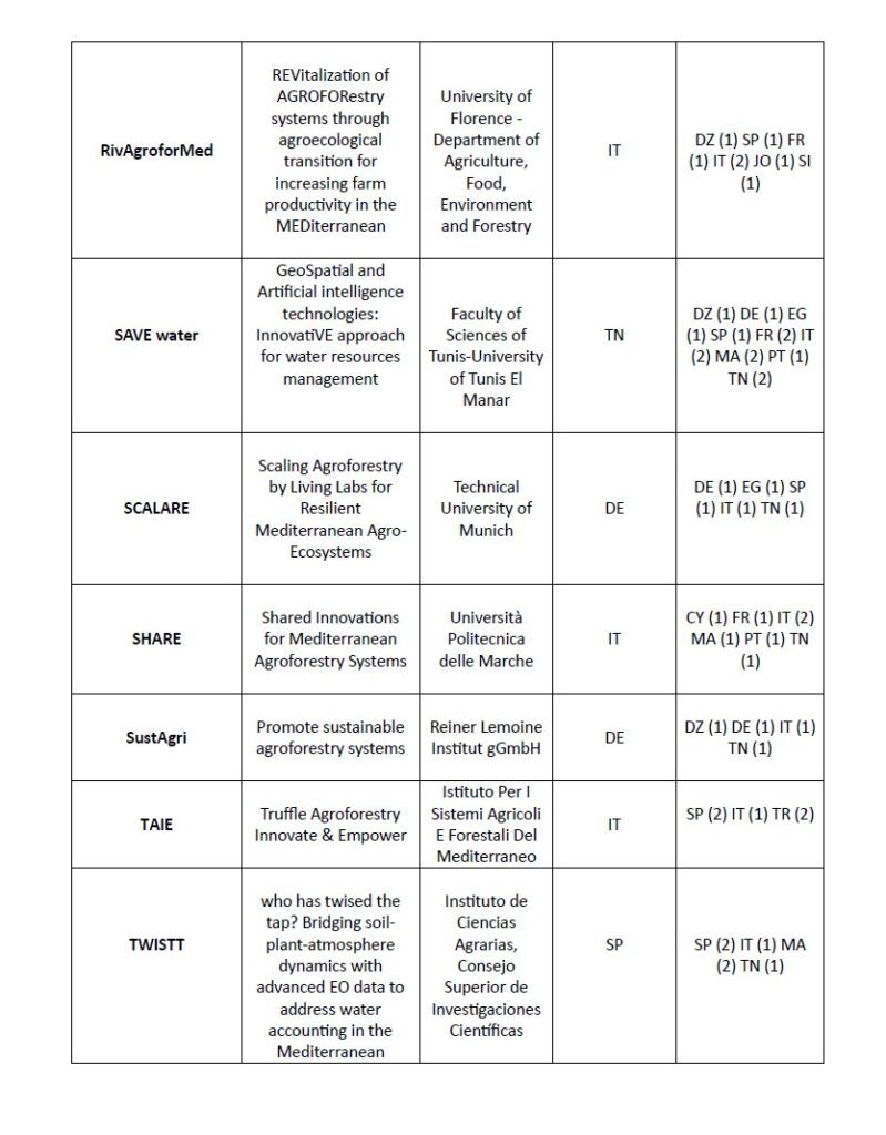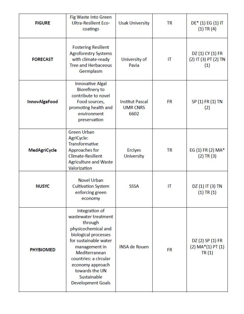 LIST OF THE PROJECTS SELECTED FOR FUNDING
