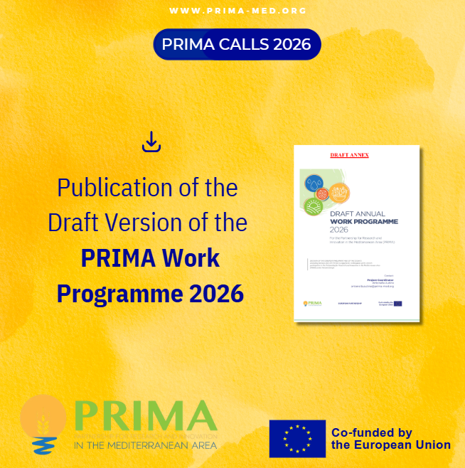 The formal adoption of the PRIMA Work Programme 2026 will be announced on the PRIMA website.