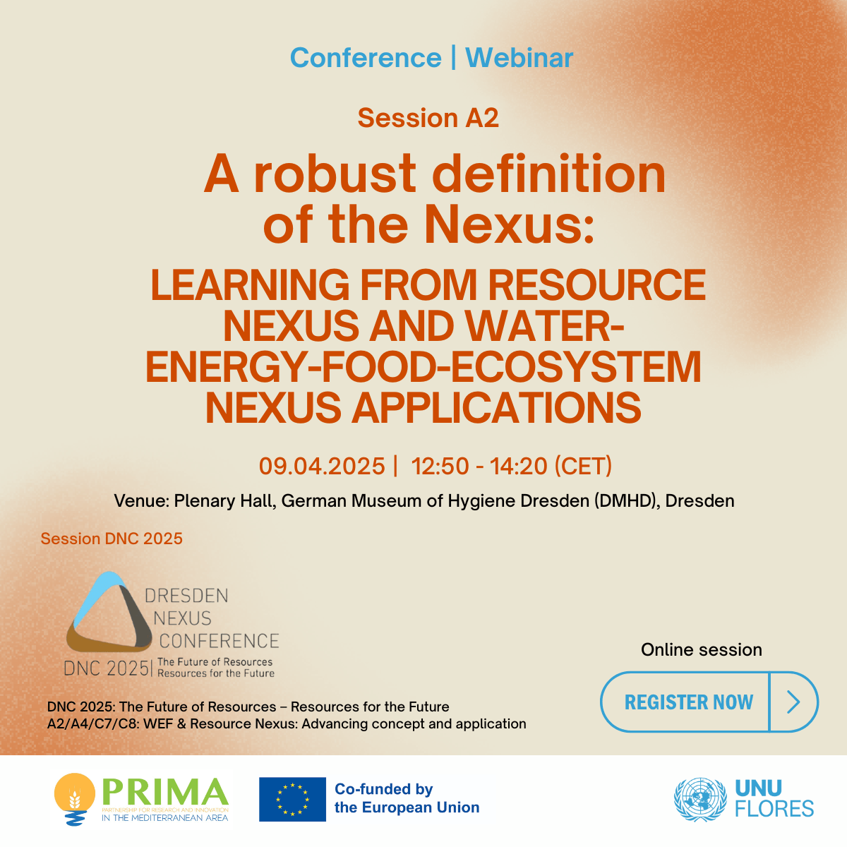 We are excited to invite you to Session A2 at the Dresden Nexus Conference 2025, where we will explore critical discussions and share insights on a robust definition of the Nexus and its application in Water-Energy-Food-Ecosystem (WEFE) frameworks.